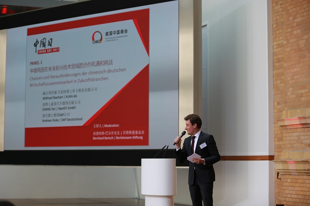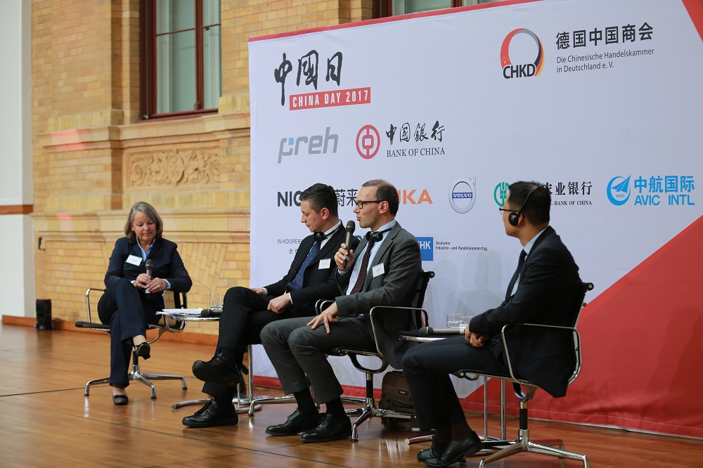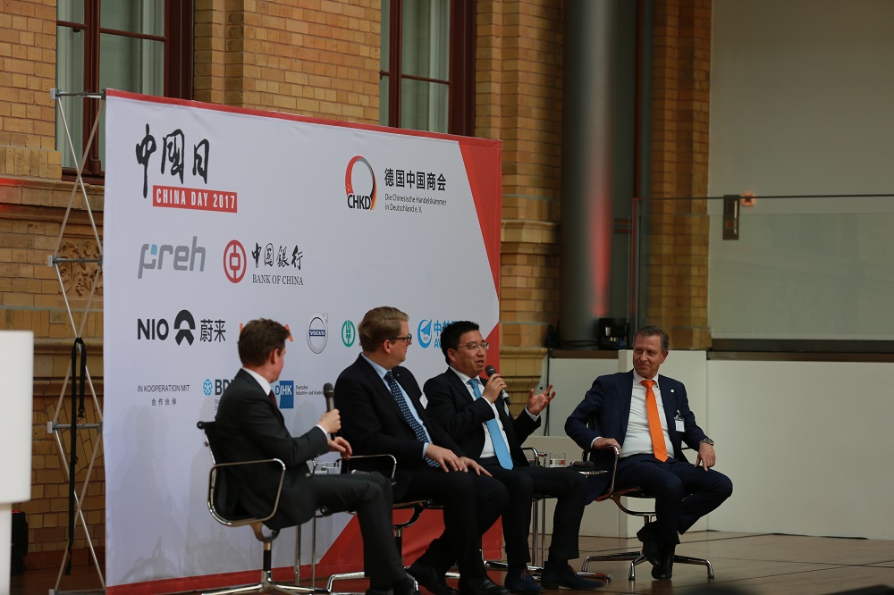 In zwei Panel-Diskussionen tauschten sich Unternehmensvertreter aus führenden chinesischen und deutschen Unternehmen über aktuelle Trends der bilateralen Wirtschaftszusammenarbeit und bei chinesischen Investitionen in Deutschland aus. Vertreter der Preh GmbH, KUKA, SAP, NextEV, KION, Alibaba und der Agricultural Bank of China boten den Gästen dabei wertvolle Einblicke und Lösungsansätze. Alle Teilnehmer hoben die große Bedeutung der engen Zusammenarbeit zwischen chinesischen und deutschen Unternehmen und der sich dadurch ergebenen Synergieeffekte für beide Seiten hervor. Insbesondere auf dem Gebiet Forschung und Entwicklung, so waren sich die Panel-Teilnehmer einig, sei man abhängig von beidseitigen Ideen und Innovationen, welche in beide Richtungen fließen müssten. (China Day 2017 – Agenda)
